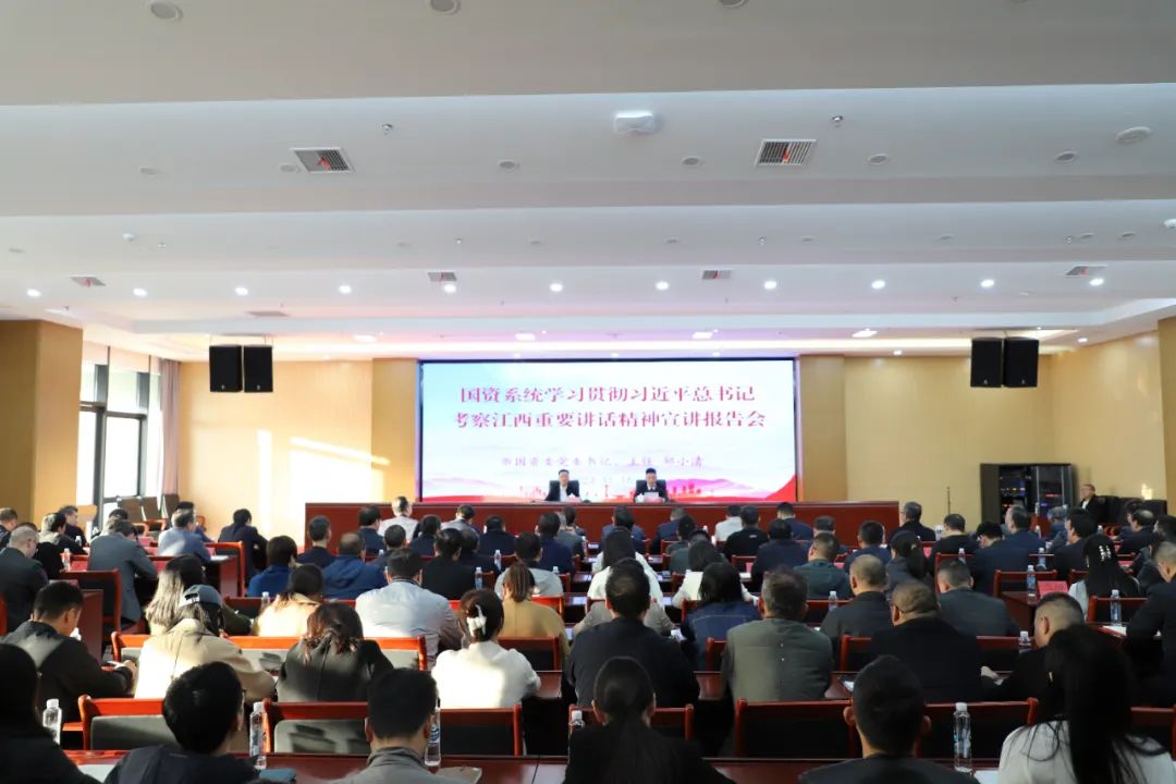11月16日,學(xué)習(xí)貫徹習(xí)近平總書記考察江西重要講話精神市委宣講團(tuán)報(bào)告會(huì)走進(jìn)市國(guó)資系統(tǒng)。市委宣講團(tuán)成員,市國(guó)資委黨委書記、主任鄒小清作宣講報(bào)告。市國(guó)資委黨委委員、副主任彭紹平主持報(bào)告會(huì)。市國(guó)資委領(lǐng)導(dǎo)班子成員,市發(fā)投集團(tuán)、城投公司、國(guó)投集團(tuán)、旅游集團(tuán)等13家市屬國(guó)有企業(yè)班子成員,基層黨支部書記,黨員群眾代表及市國(guó)資委機(jī)關(guān)干部,共計(jì) 150余人參加。