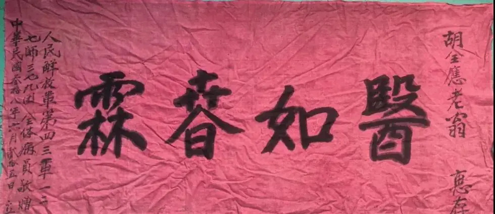 “滴水之恩,涌泉相報?!苯夥跑婋x開時,許多被救治過的官兵紛紛拉著胡前應的手說,一定不忘救命之恩,待全國解放了再來看望老人家。病員和部隊還各贈送給胡前應一塊紅布匾。