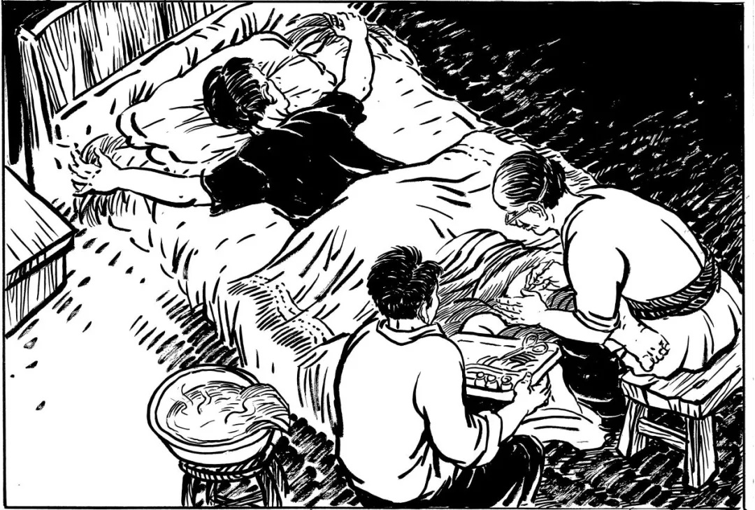這天,謝團(tuán)長見老中醫(yī)這段時(shí)間總是看見自己的傷口就心事重重的樣子,心里也明白了八九分,便問道:“大叔,是不是我腿中還有彈片?”老中醫(yī)點(diǎn)點(diǎn)頭。謝團(tuán)長又問:“是不是取不出來?”老中醫(yī)說:“取得出來,取得出來?!敝x團(tuán)長笑了笑:“那你現(xiàn)在就給我取吧?!崩现嗅t(yī)猶豫了好一陣子,搖著頭說:“你現(xiàn)在身子還虛,動(dòng)手術(shù)怕有意外,另外……”謝團(tuán)長說:“大叔,如果你沒有什么難處,只管動(dòng)手術(shù)吧,我聽你的?!崩现嗅t(yī)嘆了口氣:“謝團(tuán)長,實(shí)話對你說,這手術(shù)本來早就該動(dòng),但沒有麻藥怕你吃不消,我和生保想了很多辦法,都沒有把麻藥弄到……”謝團(tuán)長一聽,才知道老中醫(yī)近來心神不寧,四處奔忙,原來是為了找麻藥,想減輕他在手術(shù)時(shí)的痛苦,不禁感動(dòng)得熱淚盈眶。他緊緊攥住老中醫(yī)的手說:“大叔,你們這樣對待我,我是終身難忘呀!沒有麻藥不要緊,古人尚能刮骨療毒,何況我還是一個(gè)紅軍戰(zhàn)士、共產(chǎn)黨員呢!大叔,你現(xiàn)在就開始動(dòng)手術(shù)吧!”老中醫(yī)望著謝團(tuán)長剛毅的面容,也激動(dòng)得流出了淚水。
