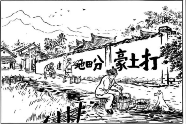 紅軍離開坑頭村后,國民黨派了三個(gè)人來清洗標(biāo)語,村民誰也不幫忙。這三個(gè)人好不容易弄來梯子和水桶,爬到墻上去刷,卻怎么也洗不凈刷不掉。那個(gè)爬在墻上的人,累得頭暈眼花、天旋地轉(zhuǎn),從梯子上掉了下來。