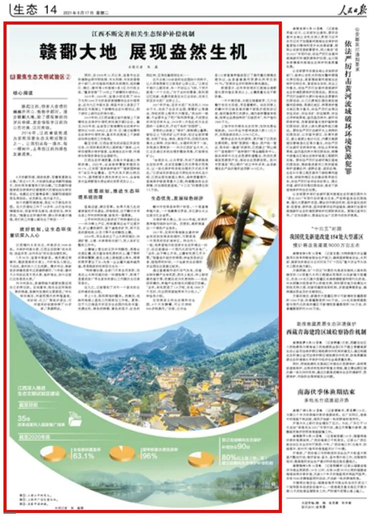 截至目前,江西全面完成試驗區(qū)階段性任務(wù),35項改革成果列入國家推廣清單,山水林田湖草沙保護修復(fù)、全流域生態(tài)補償、河湖林長制等改革走在全國前列。