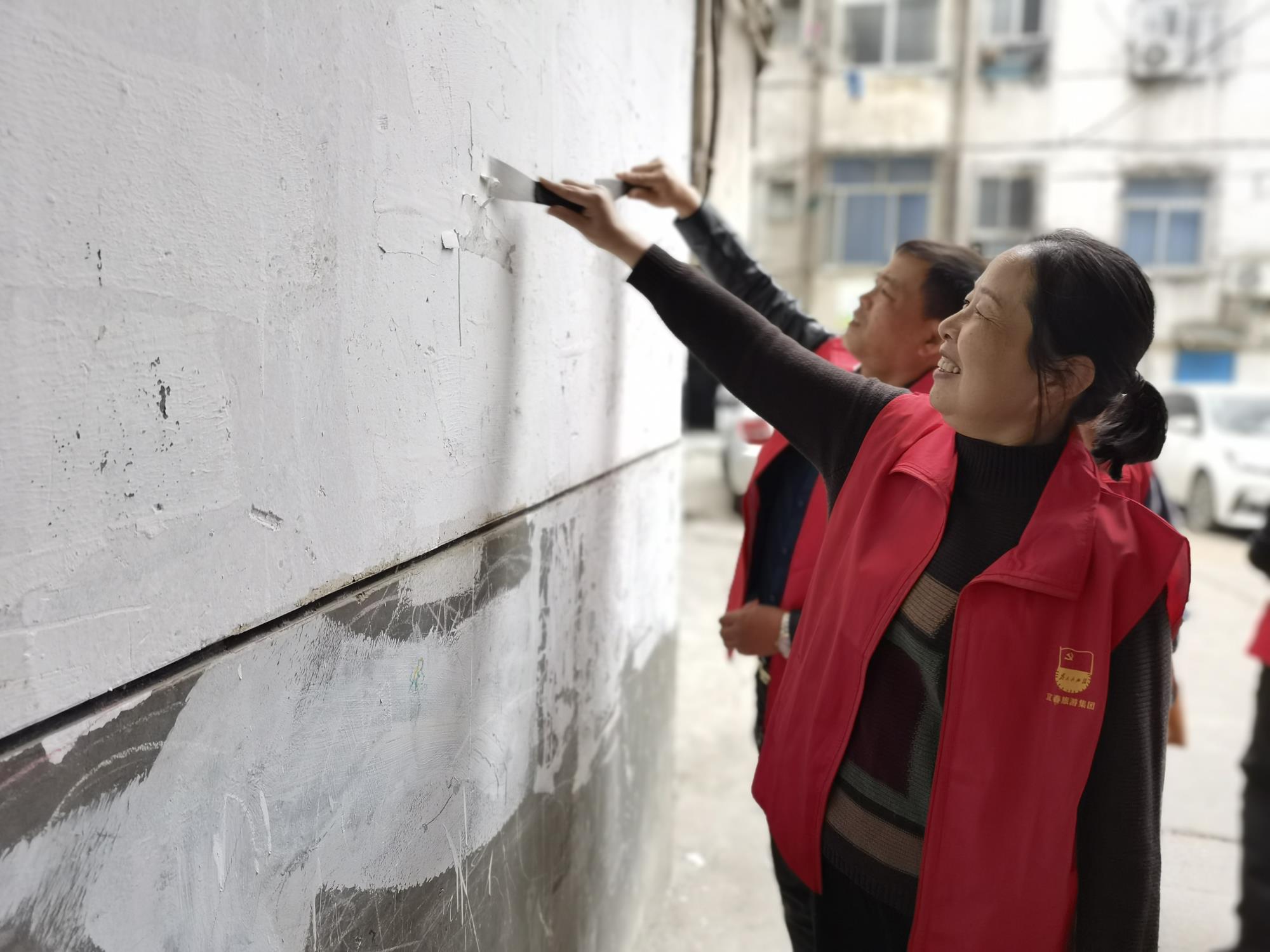 活動(dòng)第一階段,公司與社區(qū)黨員集中學(xué)習(xí)市委書記于秀明同志在全市第五次黨代會上的講話精神,交流思想、增進(jìn)了解,推動(dòng)國企和社區(qū)基層黨建工作的互促發(fā)展。學(xué)習(xí)交流結(jié)束后,與會黨員共赴黃頗社區(qū)十中校區(qū)附近的老舊小區(qū),對陳舊斑駁的小區(qū)過道、墻體進(jìn)行刷白維護(hù),清理墻體和樓道“牛皮癬”。