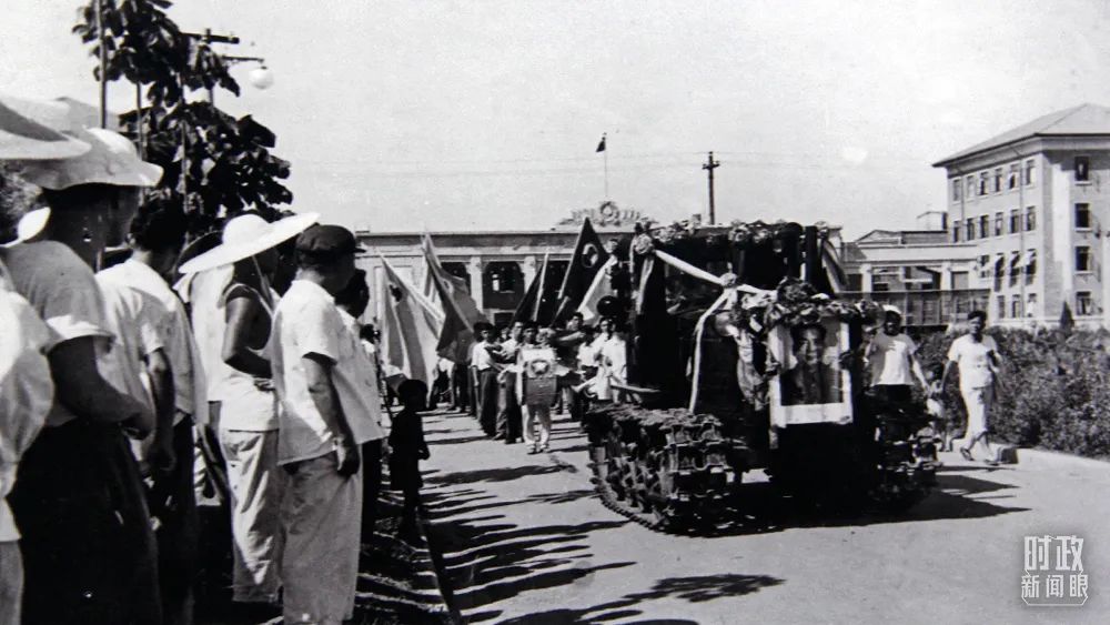 △1958年7月,第一臺國產(chǎn)“東方紅”牌拖拉機在洛陽拖拉機廠下線。(圖/視覺中國)