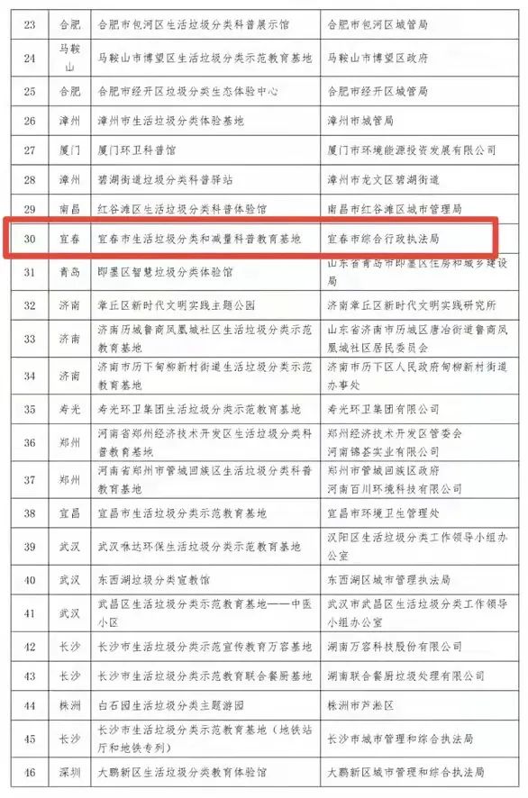 全國第一批共56家垃圾分類示范教育基地名單