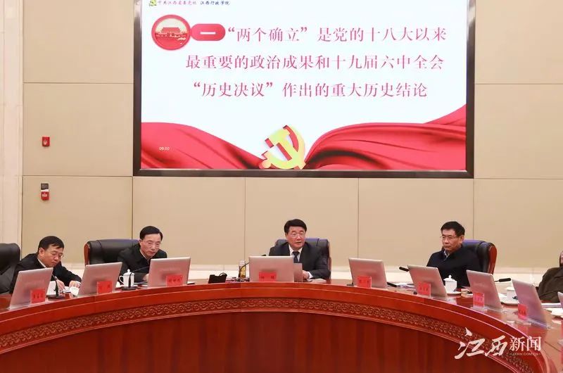 易煉紅就深入學習貫徹黨的十九屆六中全會精神,更加堅定自覺地捍衛(wèi)“兩個確立”、做到“兩個維護”提出要求。他強調(diào),