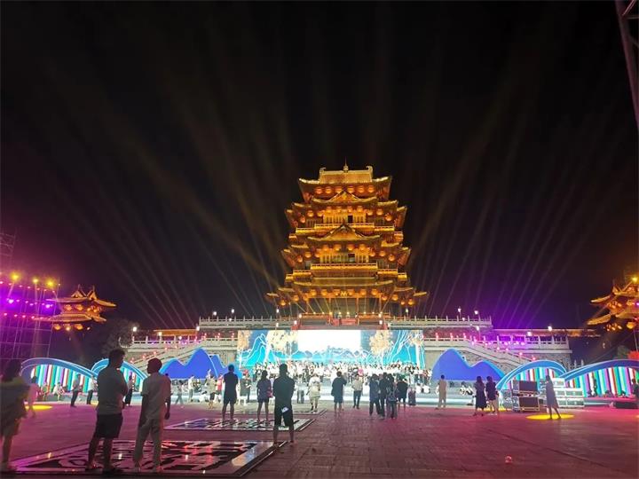 炎炎夏日,驕陽如火。在宜春市多勝樓廣場,工作人員正緊鑼密鼓搭建舞臺,為即將到來的2022年宜春·第十六屆月亮文化旅游節(jié)開幕式做準(zhǔn)備。