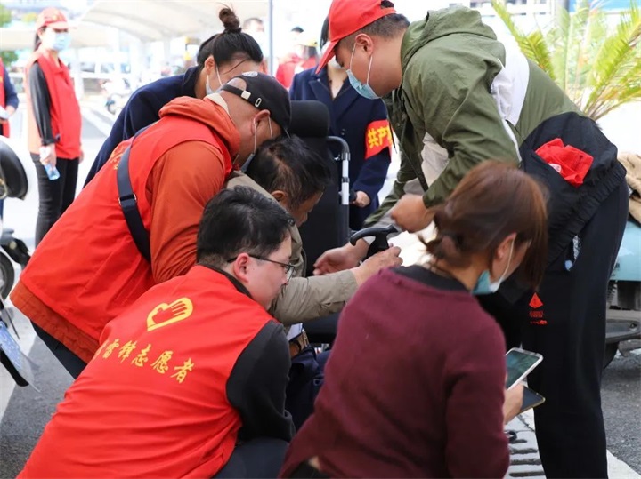 在前往高鐵站開展學雷鋒志愿活動途中,突遇一名外地旅客突發(fā)身體不適,全身無力癱倒在地,志愿者們見狀趕忙一起將老人攙扶至陰涼處,為老人服下速效救心丸,并關切地詢問老人是否有過往病史,身體具體有哪些不適。并迅速聯(lián)系高鐵站服務人員推來輪椅,緩解老人的不適。與此同時,志愿者們一方面協(xié)助通知遠在上海的老人家屬,一方面提醒隨行人員撥打120急救電話,將老人移交給前來的醫(yī)護人員接收后才放心離去。