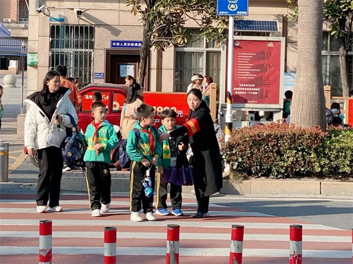 在宜陽學校大門前,宜陽食堂的志愿者結合周邊地區(qū)實際情況,組織開展交通志愿服務活動。在學校放學高峰時段,志愿者引導車輛讓行,組織學生遵守交通規(guī)則、有序通過人行橫道,為孩子們安全回家“保駕護航”。